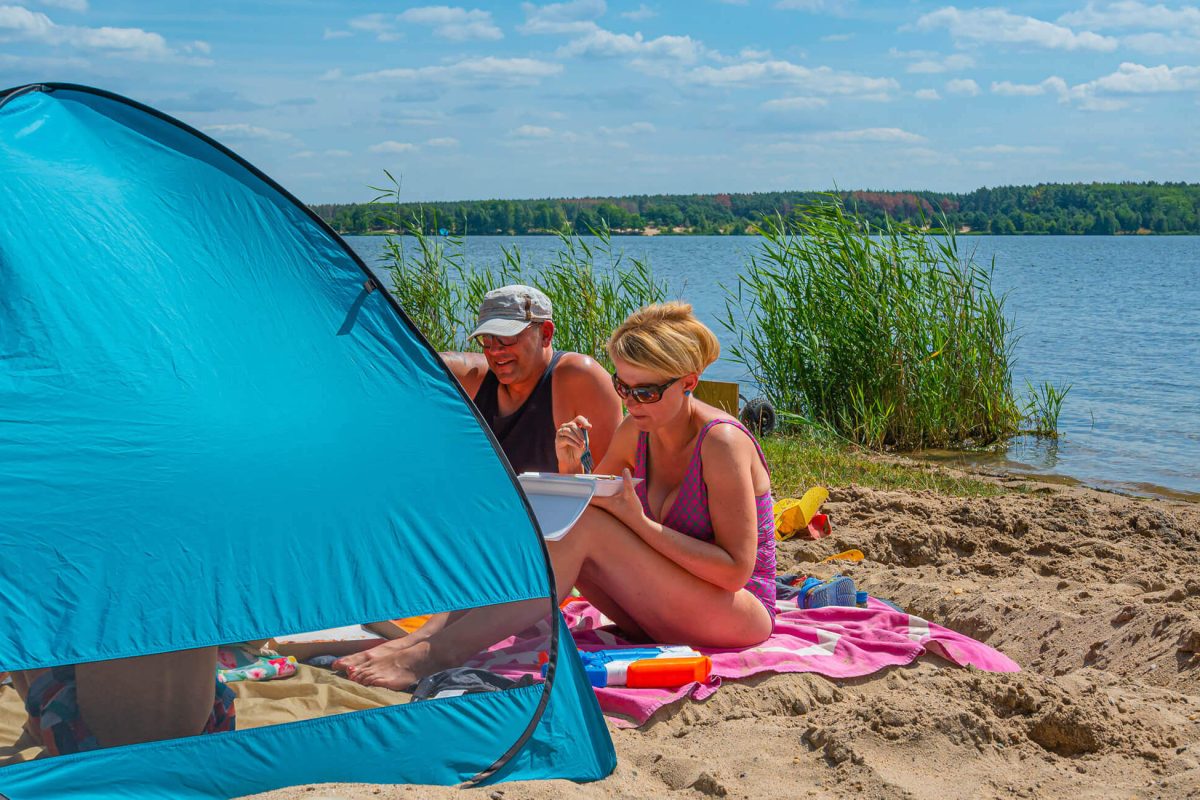Watersportcamping gelegen aan meer met strand, met een boven- en benedengedeelte. Boven tussen de bomen en beneden aan het water. Schoon sanitair. Gloednieuw (2023) luxe sanitair op het benedengedeelte van de camping.