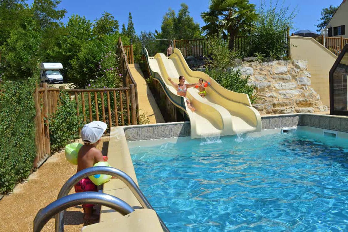 De camping ligt midden in de natuur. Hier geniet je van een prachtig uitzicht over de bossen van de Dordogne. Dit uitzicht bewonder je het liefst vanuit het zwembad. De Dordogne staat bekend om het mooie weer. Daarom is er natuurlijk een fijn buitenzwembad én een verwarmd binnenzwembad met een uitschuifbaar dak. Je ontspant hier in je ligstoel terwijl de kinderen van de glijbaan gaan. In de buurt vind je zelfs nog meer waterparken en natuurlijk de rivier de Dordogne, waar je fijn kunt zwemmen.