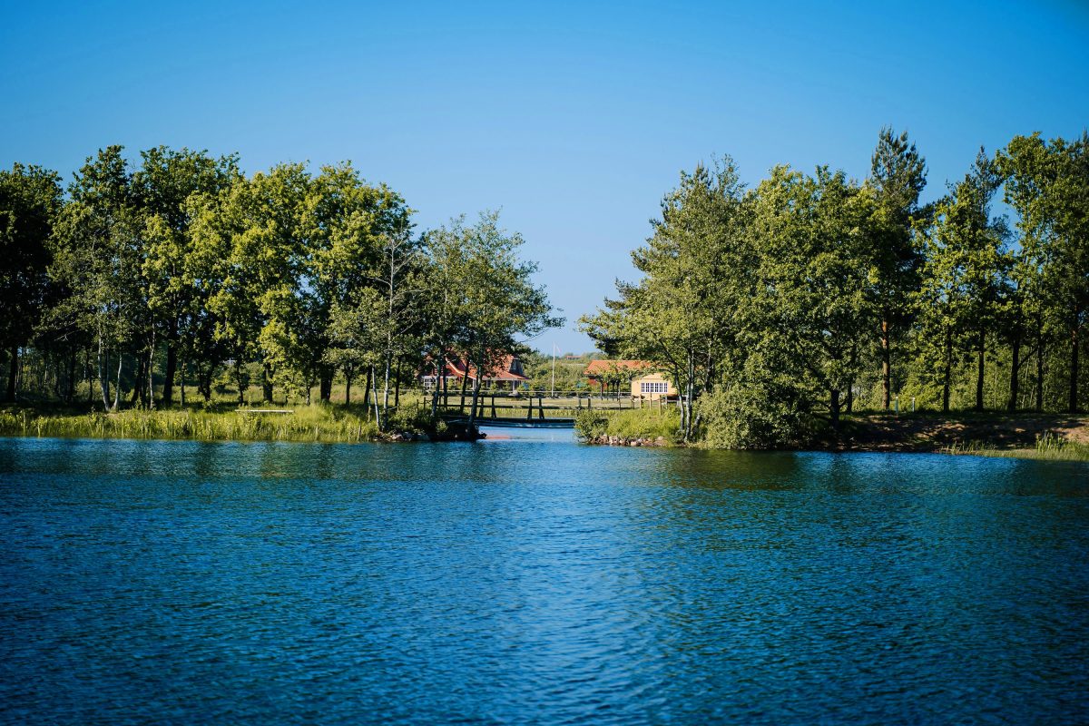 Camping ligt aan 2 meren, met gescheiden deel voor vissers en waterrecreanten. Camping is glampingniveau. Luxe camping met 20 plaatsen. Sauna’s aanwezig.