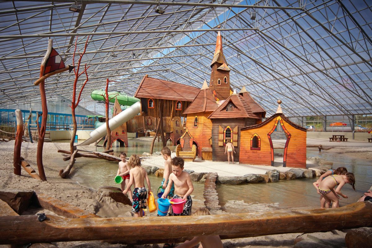 Binnen kunnen je kinderen zich uitleven in een waar zwemparadijs met glijbanen en peuterbaden.